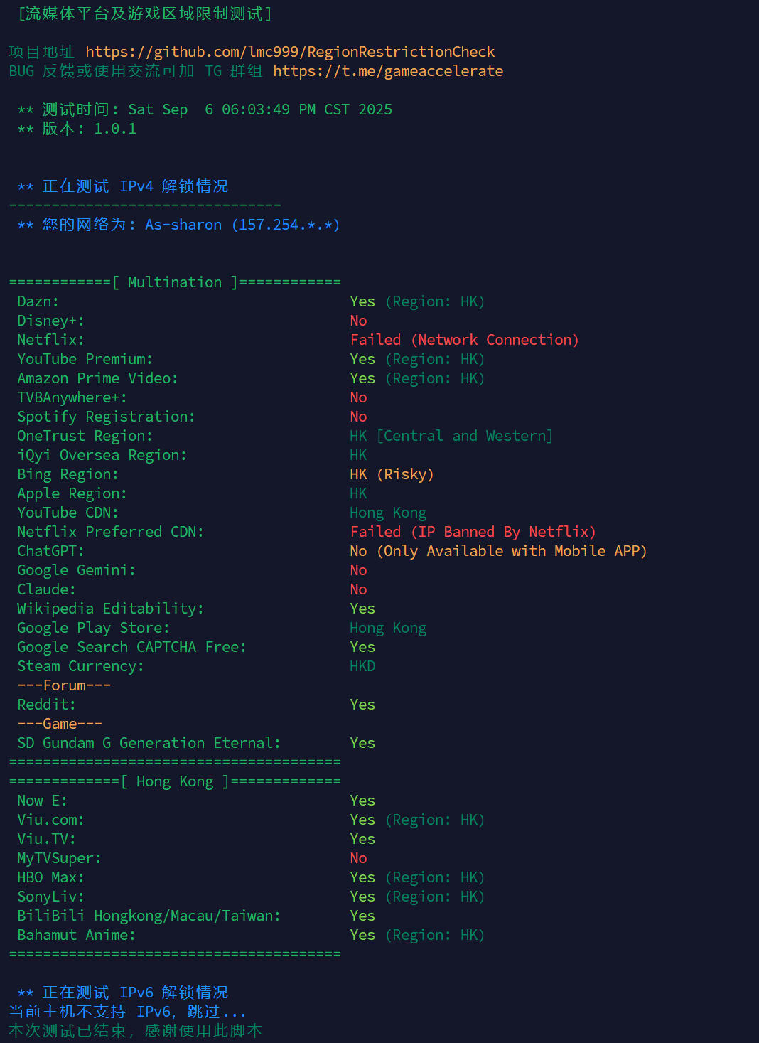 4. 流媒体解锁测试 (Streaming Unlock Test):