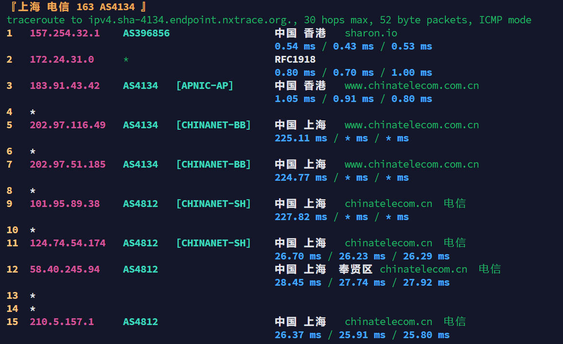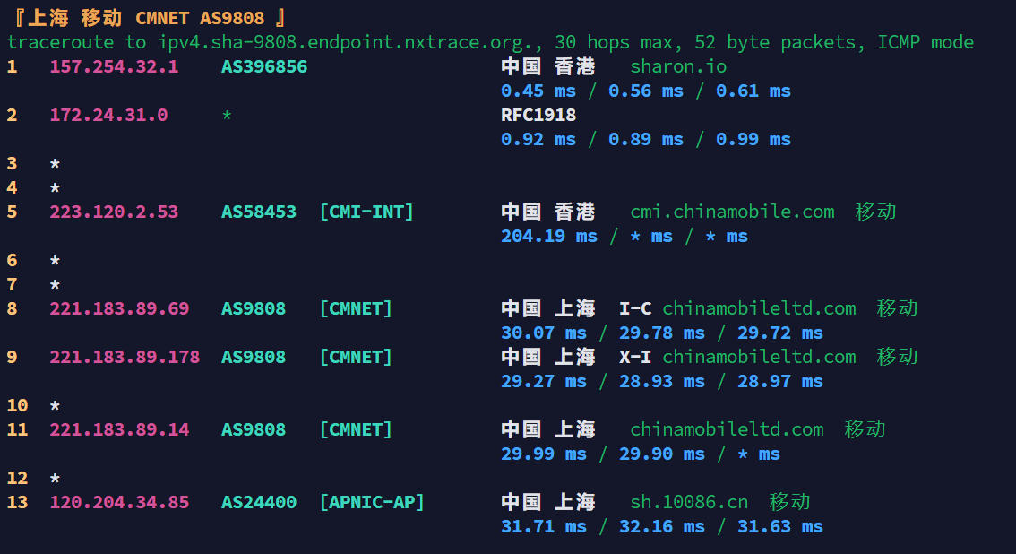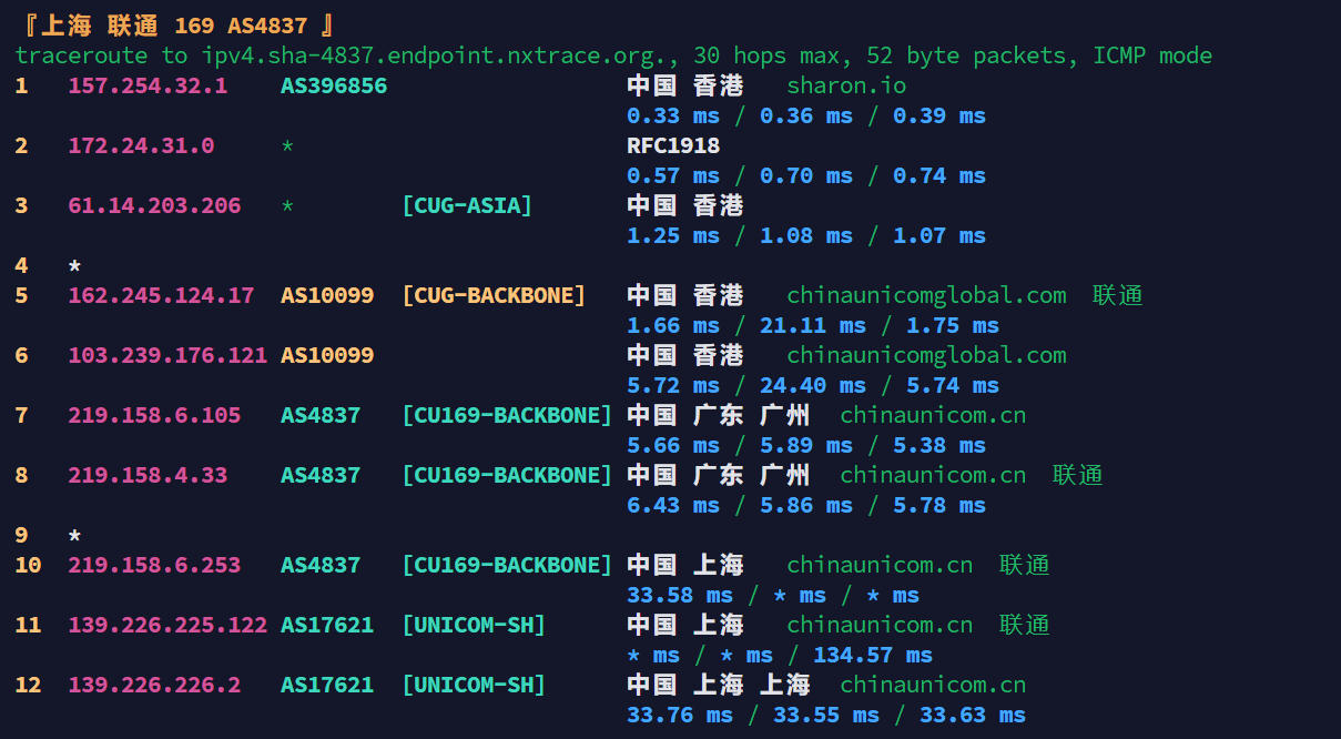 网络质量是评测香港主机的核心环节,尤其是对于面向中国大陆用户的服务。Sharon Networks 在这方面表现尤为出色,其 AS 号为 AS396856。